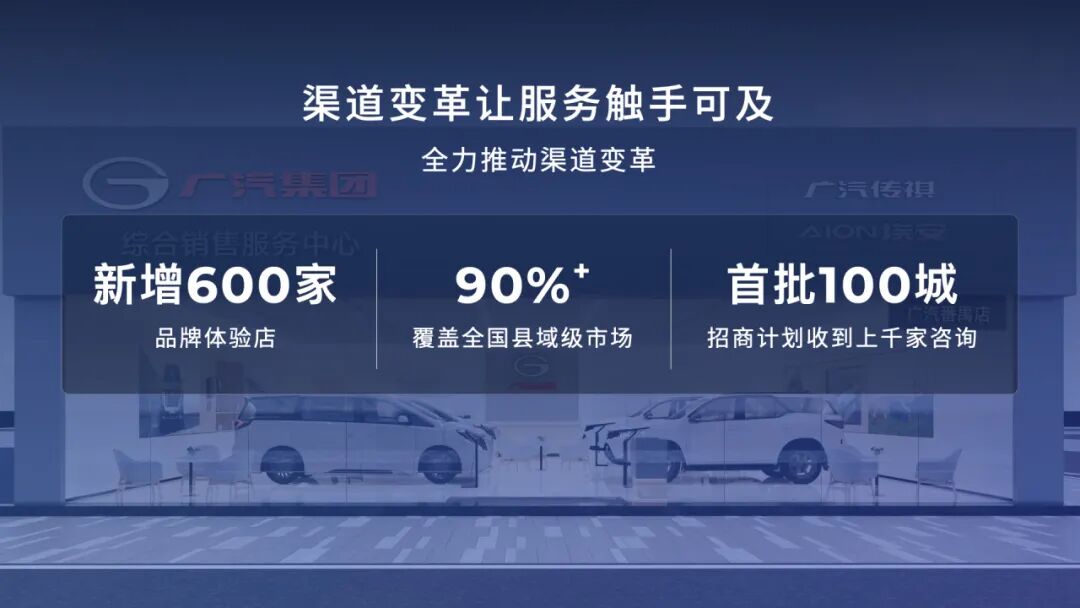 在新服务方面,广汽将兑现对用户的承诺。一方面,全力推动渠道变革,规划新增 600 家品牌体验店,覆盖全国 90% 以上县域级市场。目前,广汽已发布首批 100 个城市招商布局。